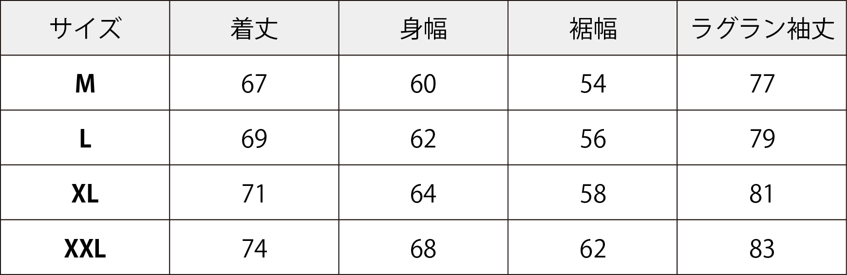 SIZE : M / L / XL / XXL