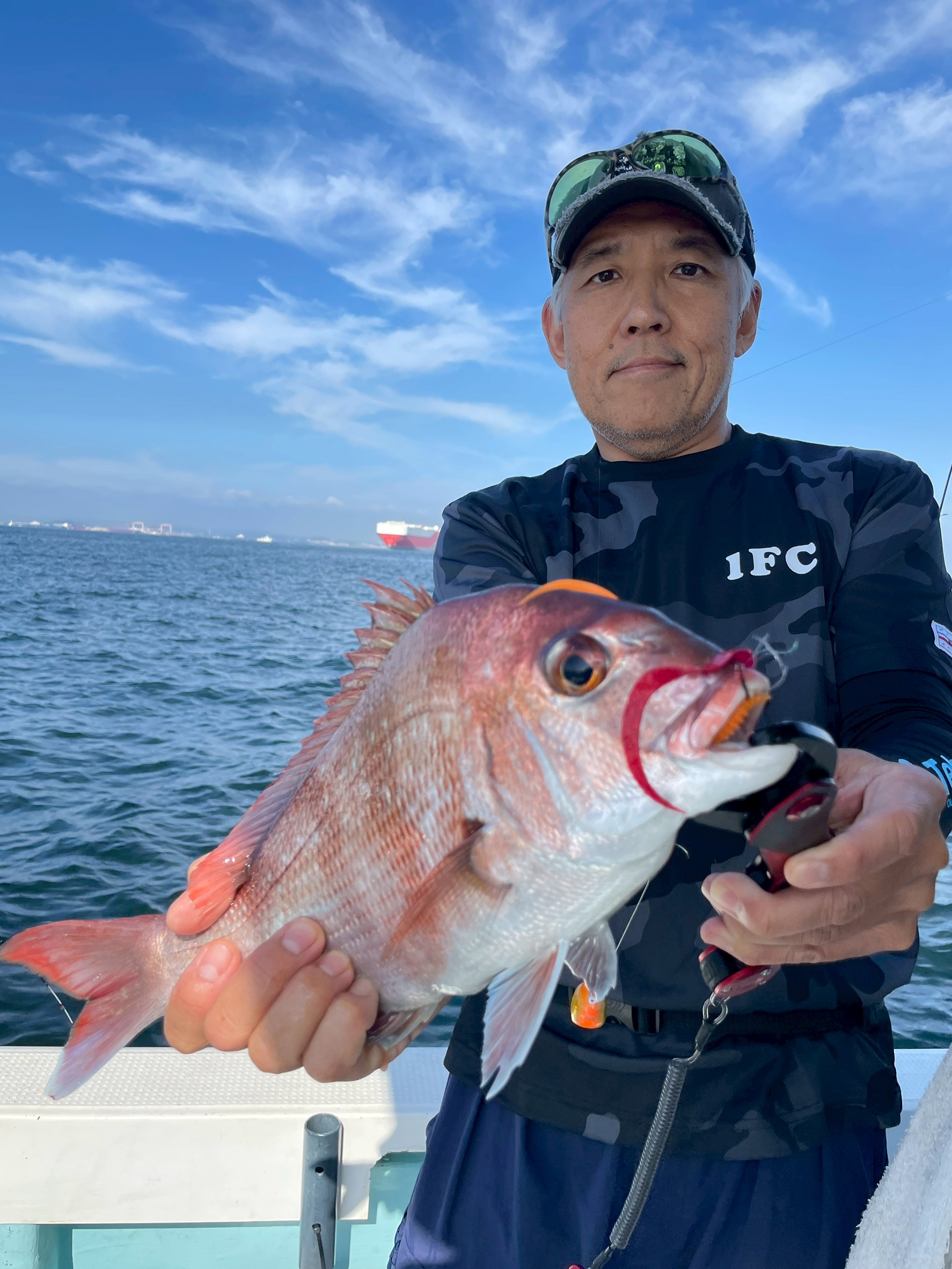 その直後に上がってきたのは、オキツさんに本命の真鯛!