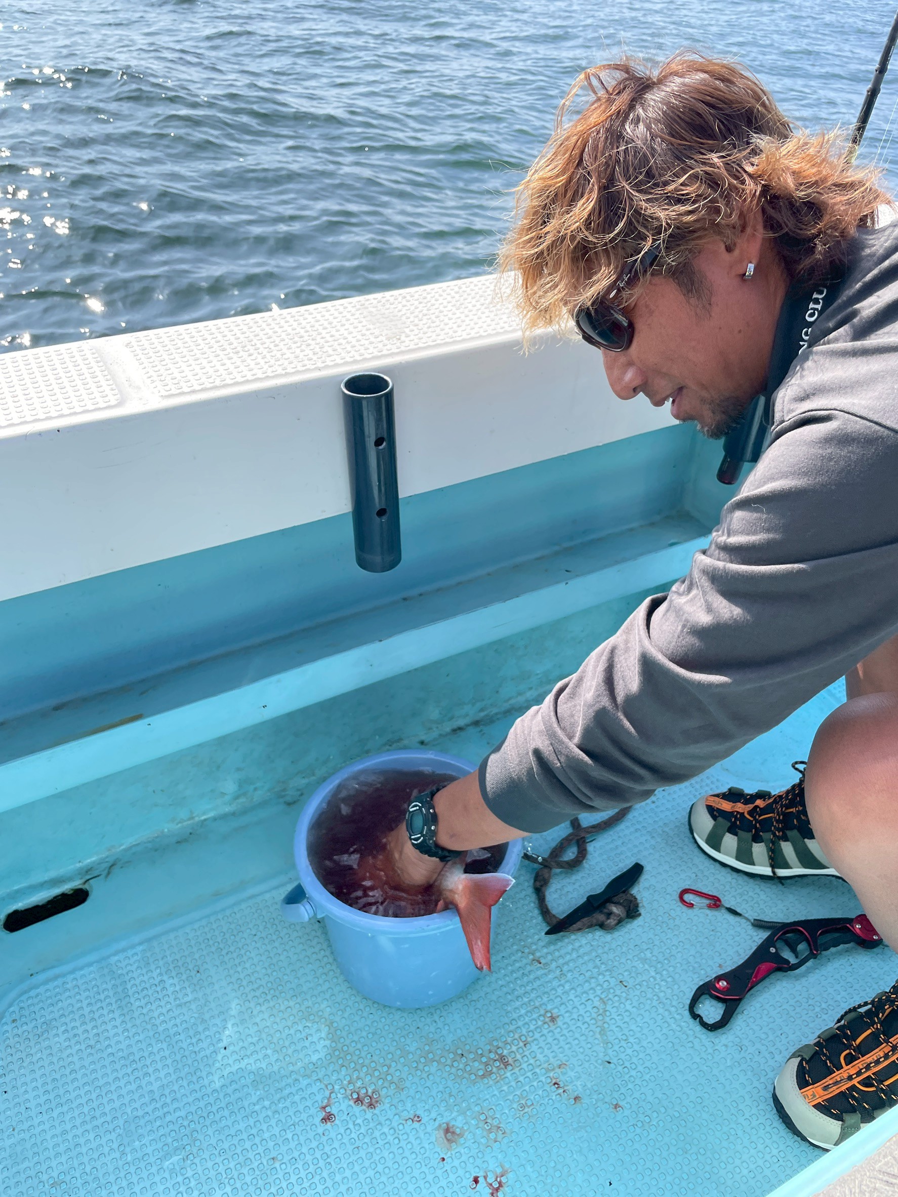 釣り上げた魚を津本さんが自ら津本式の「ふりふり血抜き」で処理してくれる、なんとも贅沢なサービス!